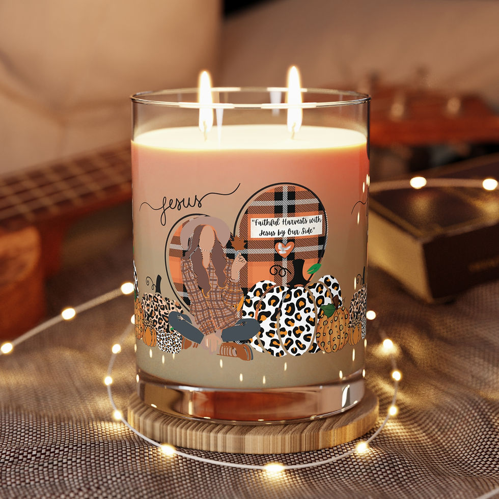 "Faithful Harvest with Jesus by Our Side" Scented Full Glass Candle 11oz.